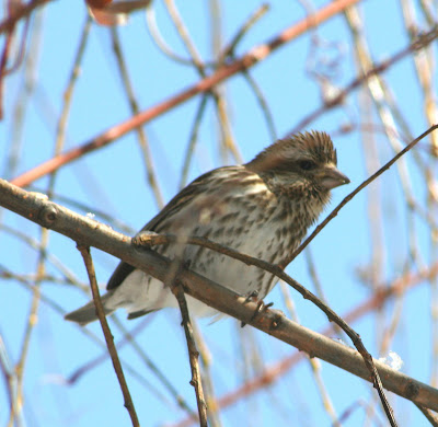 In the campground, I found the wintering Yellow-rumped Warblers, Purple Finches, Brown Creeper and other woodpeckers. There were also a couple of White-throated Sparrows at the north end.